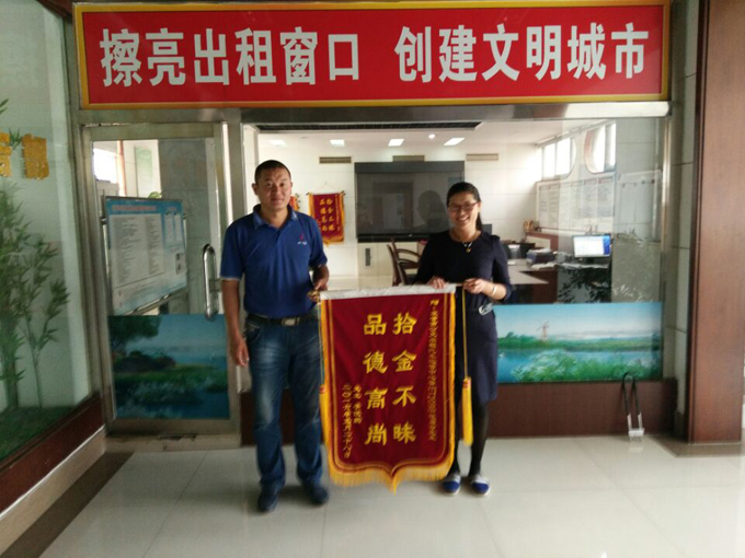 近日,北京乘客李俊鵬先生將一面寫有“拾金不昧,品德高尚”的錦旗送到了市公交公司出租汽車運營中心。